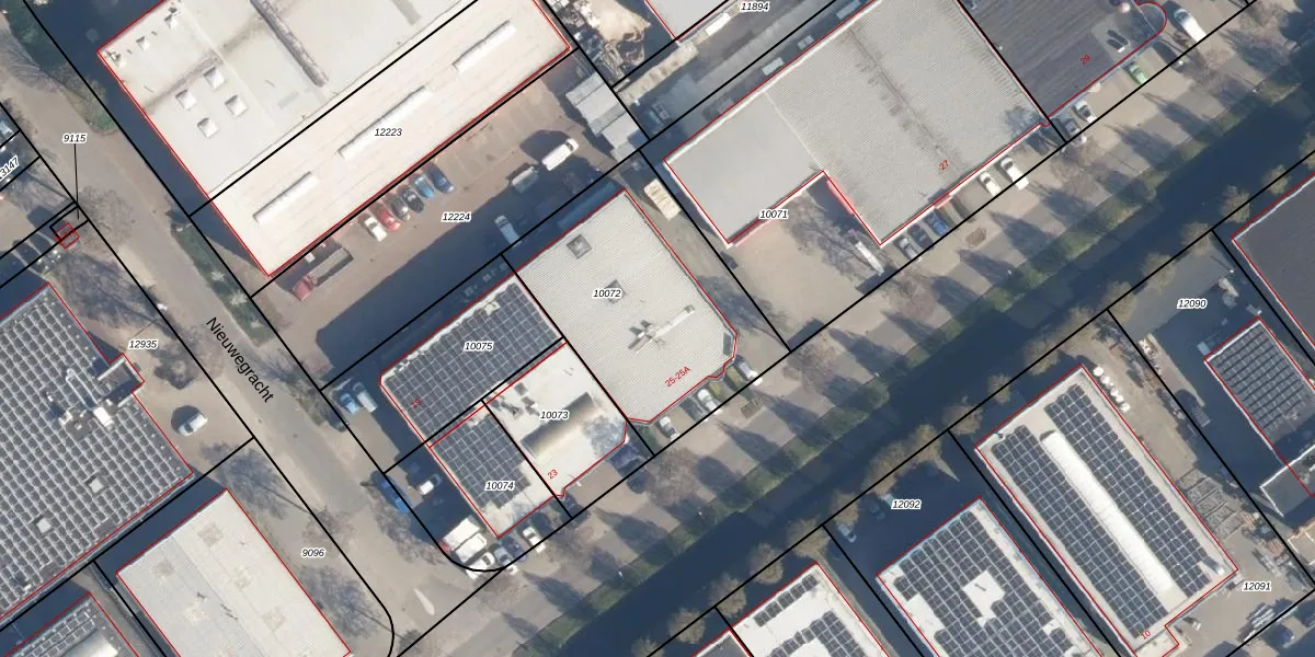 Het perceel waarop Nieuwegracht 25 staat heeft een oppervlakte van 1015 m². Dit is een zeer groot perceel. De perceeloppervlakte wordt geregistreerd door het Kadaster. Gedetailleerde informatie over de maten van dit perceel kunt u vinden in het rapport Kadastrale kaart met maatvoering van Nieuwegracht 25.