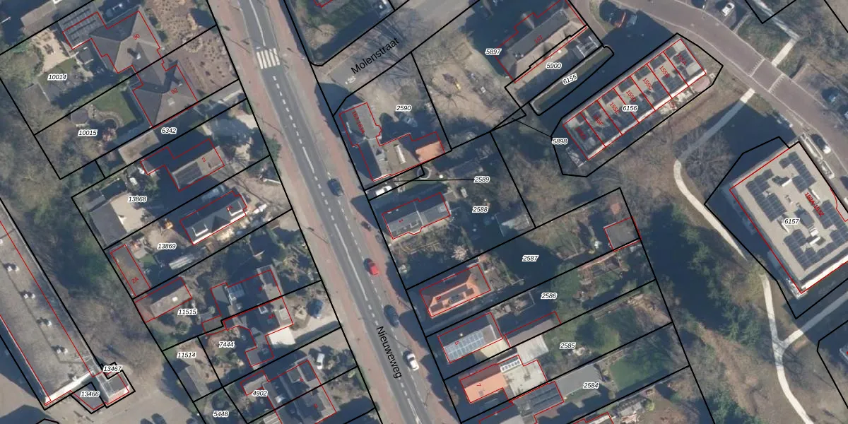 Nieuweweg 1 is gelegen op kadastraal perceel SOE00K2588. Deze kadastrale aanduiding is uniek en wordt gebruikt door het Kadaster om eigendomsrechten en andere zakelijke rechten vast te leggen. Het perceel maakt onderdeel uit van de kadastrale gemeente Soest.
