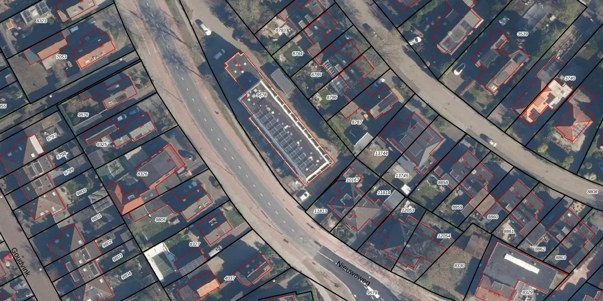 Het perceel waarop Nieuweweg 91-V staat heeft een oppervlakte van 1725 m². Dit is een zeer groot perceel. De perceeloppervlakte wordt geregistreerd door het Kadaster. Gedetailleerde informatie over de maten van dit perceel kunt u vinden in het rapport Kadastrale kaart met maatvoering van Nieuweweg 91-V.