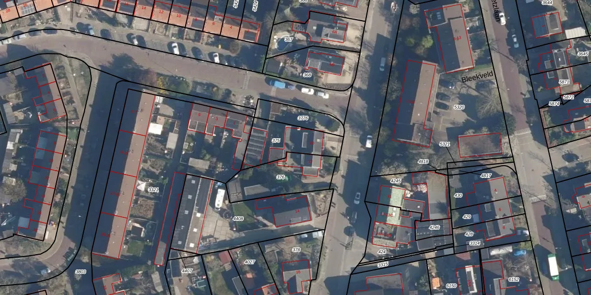 Gebruik de zoekbalk of klik op een perceel voor informatie over de adressen binnen dit perceel.