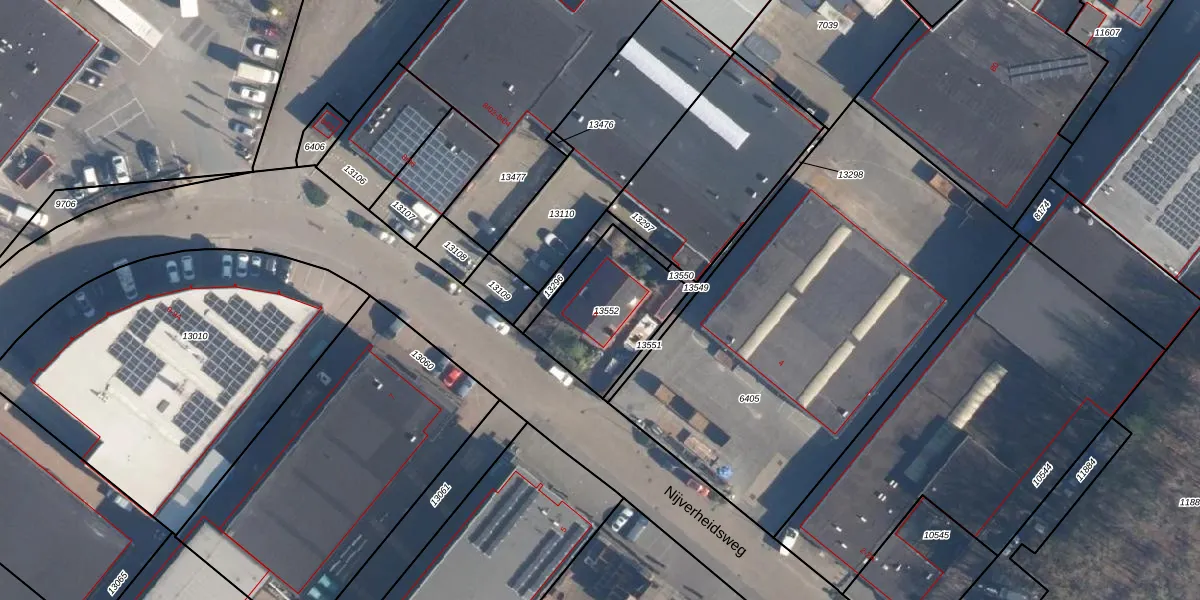 Het perceel waarop Nijverheidsweg 6 staat heeft een oppervlakte van 404 m². Dit is een groot perceel. De perceeloppervlakte wordt geregistreerd door het Kadaster. Gedetailleerde informatie over de maten van dit perceel kunt u vinden in het rapport Kadastrale kaart met maatvoering van Nijverheidsweg 6.