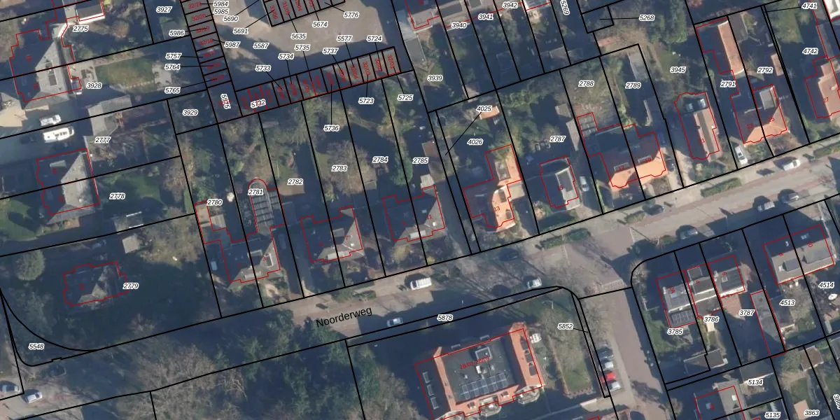 Noorderweg 11 is gelegen op kadastraal perceel SOE00A2785. Deze kadastrale aanduiding is uniek en wordt gebruikt door het Kadaster om eigendomsrechten en andere zakelijke rechten vast te leggen. Het perceel maakt onderdeel uit van de kadastrale gemeente Soest.