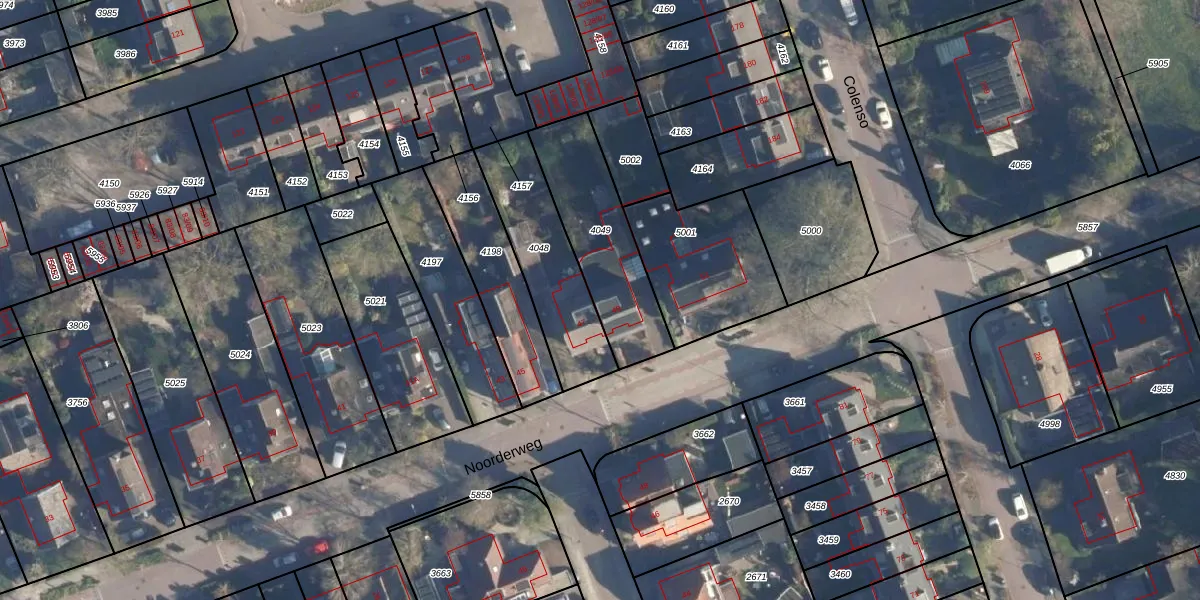 Het perceel waarop Noorderweg 49 staat heeft een oppervlakte van 418 m². Dit is een groot perceel. De perceeloppervlakte wordt geregistreerd door het Kadaster. Gedetailleerde informatie over de maten van dit perceel kunt u vinden in het rapport Kadastrale kaart met maatvoering van Noorderweg 49.