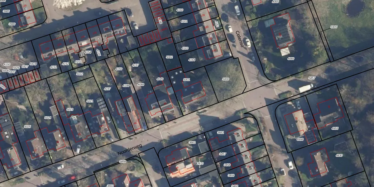 Noorderweg 51 is gelegen op kadastraal perceel SOE00A5001. Deze kadastrale aanduiding is uniek en wordt gebruikt door het Kadaster om eigendomsrechten en andere zakelijke rechten vast te leggen. Het perceel maakt onderdeel uit van de kadastrale gemeente Soest.