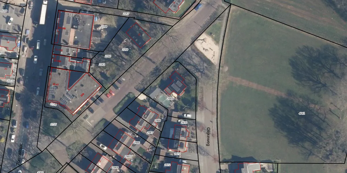 Olijkeweg 2 is gelegen op kadastraal perceel SOE00C2969. Deze kadastrale aanduiding is uniek en wordt gebruikt door het Kadaster om eigendomsrechten en andere zakelijke rechten vast te leggen. Het perceel maakt onderdeel uit van de kadastrale gemeente Soest.
