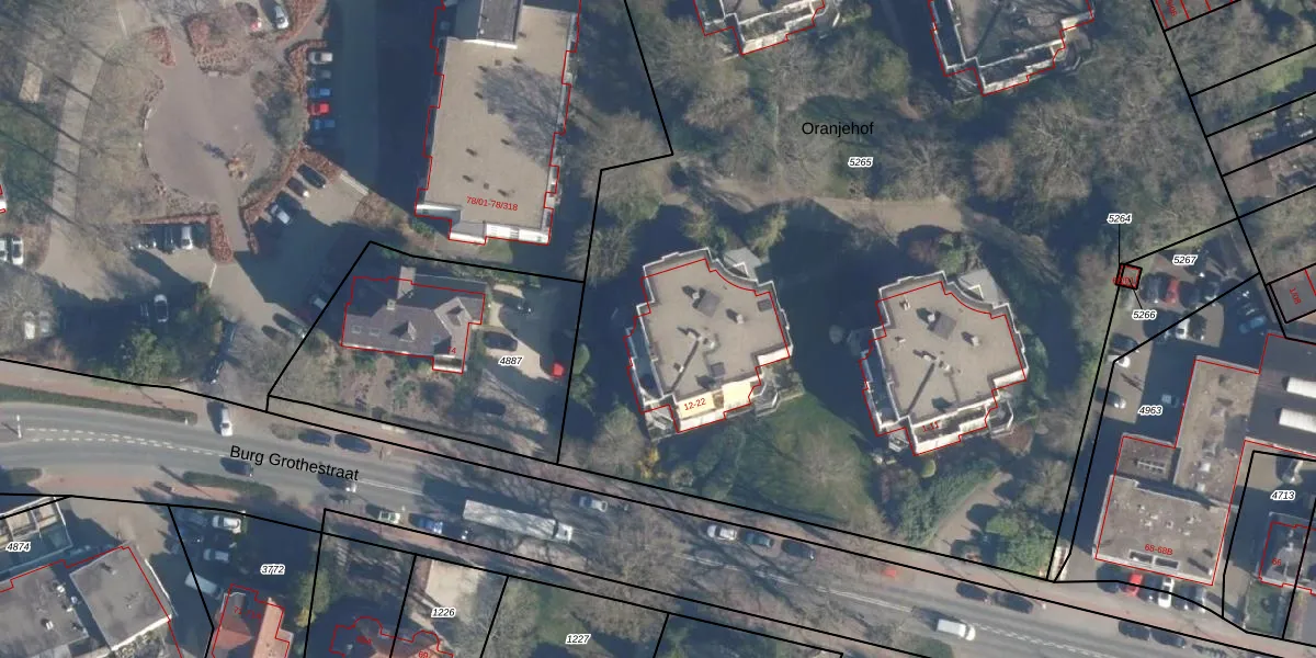 Het perceel waarop Oranjehof 17 staat heeft een oppervlakte van 8608 m². Dit is een zeer groot perceel. De perceeloppervlakte wordt geregistreerd door het Kadaster. Gedetailleerde informatie over de maten van dit perceel kunt u vinden in het rapport Kadastrale kaart met maatvoering van Oranjehof 17.