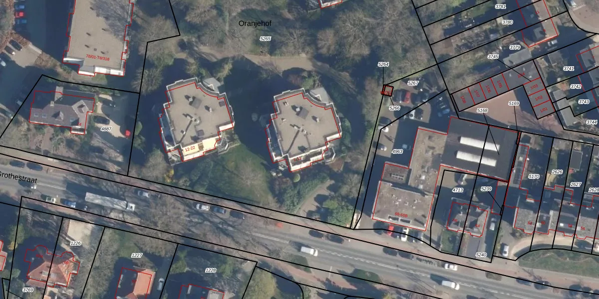 Het perceel waarop Oranjehof 8 staat heeft een oppervlakte van 8608 m². Dit is een zeer groot perceel. De perceeloppervlakte wordt geregistreerd door het Kadaster. Gedetailleerde informatie over de maten van dit perceel kunt u vinden in het rapport Kadastrale kaart met maatvoering van Oranjehof 8.