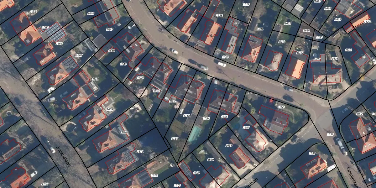 Oranjelaan 23 is gelegen op kadastraal perceel SOE00K5118. Deze kadastrale aanduiding is uniek en wordt gebruikt door het Kadaster om eigendomsrechten en andere zakelijke rechten vast te leggen. Het perceel maakt onderdeel uit van de kadastrale gemeente Soest.
