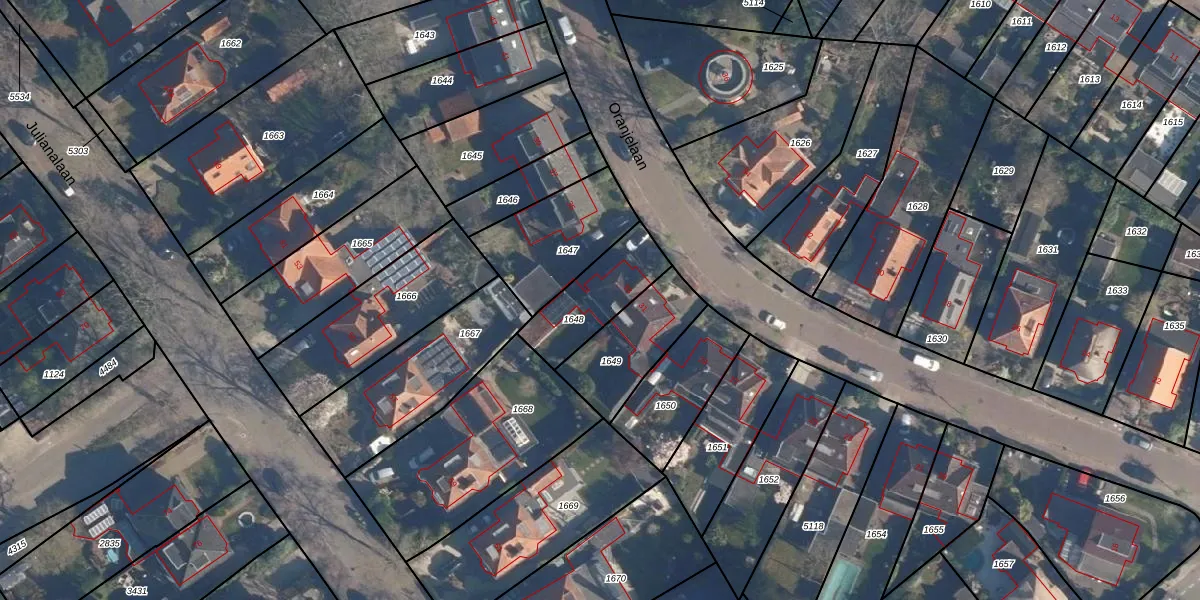 Oranjelaan 33 is gelegen op kadastraal perceel SOE00K1648. Deze kadastrale aanduiding is uniek en wordt gebruikt door het Kadaster om eigendomsrechten en andere zakelijke rechten vast te leggen. Het perceel maakt onderdeel uit van de kadastrale gemeente Soest.