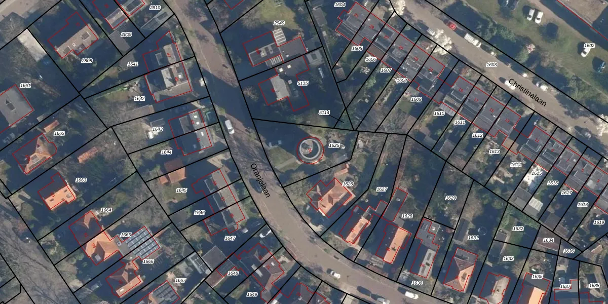 Oranjelaan 36 is gelegen op kadastraal perceel SOE00K1625. Deze kadastrale aanduiding is uniek en wordt gebruikt door het Kadaster om eigendomsrechten en andere zakelijke rechten vast te leggen. Het perceel maakt onderdeel uit van de kadastrale gemeente Soest.