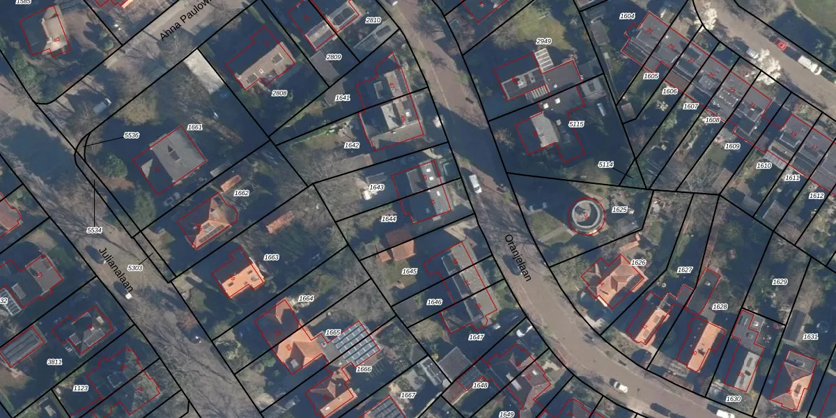 Het perceel waarop Oranjelaan 41 staat heeft een oppervlakte van 308 m². Dit is een groot perceel. De perceeloppervlakte wordt geregistreerd door het Kadaster. Gedetailleerde informatie over de maten van dit perceel kunt u vinden in het rapport Kadastrale kaart met maatvoering van Oranjelaan 41.