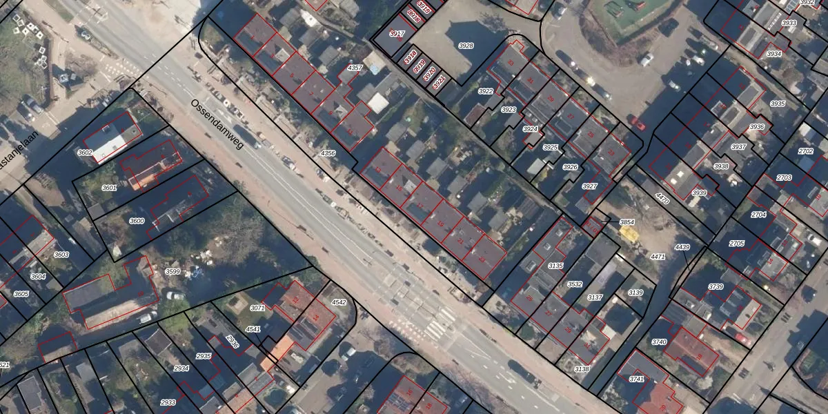 Het perceel waarop Ossendamweg 17 staat heeft een oppervlakte van 4010 m². Dit is een zeer groot perceel. De perceeloppervlakte wordt geregistreerd door het Kadaster. Gedetailleerde informatie over de maten van dit perceel kunt u vinden in het rapport Kadastrale kaart met maatvoering van Ossendamweg 17.