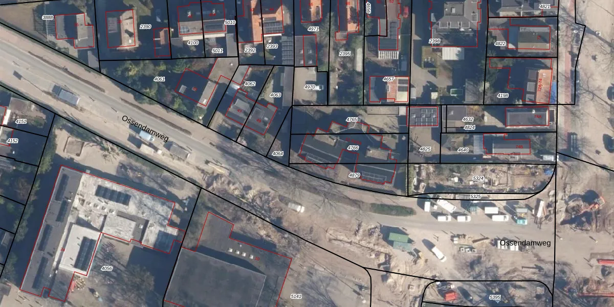 Het perceel waarop Ossendamweg 51-01 staat heeft een oppervlakte van 376 m². Dit is een groot perceel. De perceeloppervlakte wordt geregistreerd door het Kadaster. Gedetailleerde informatie over de maten van dit perceel kunt u vinden in het rapport Kadastrale kaart met maatvoering van Ossendamweg 51-01.
