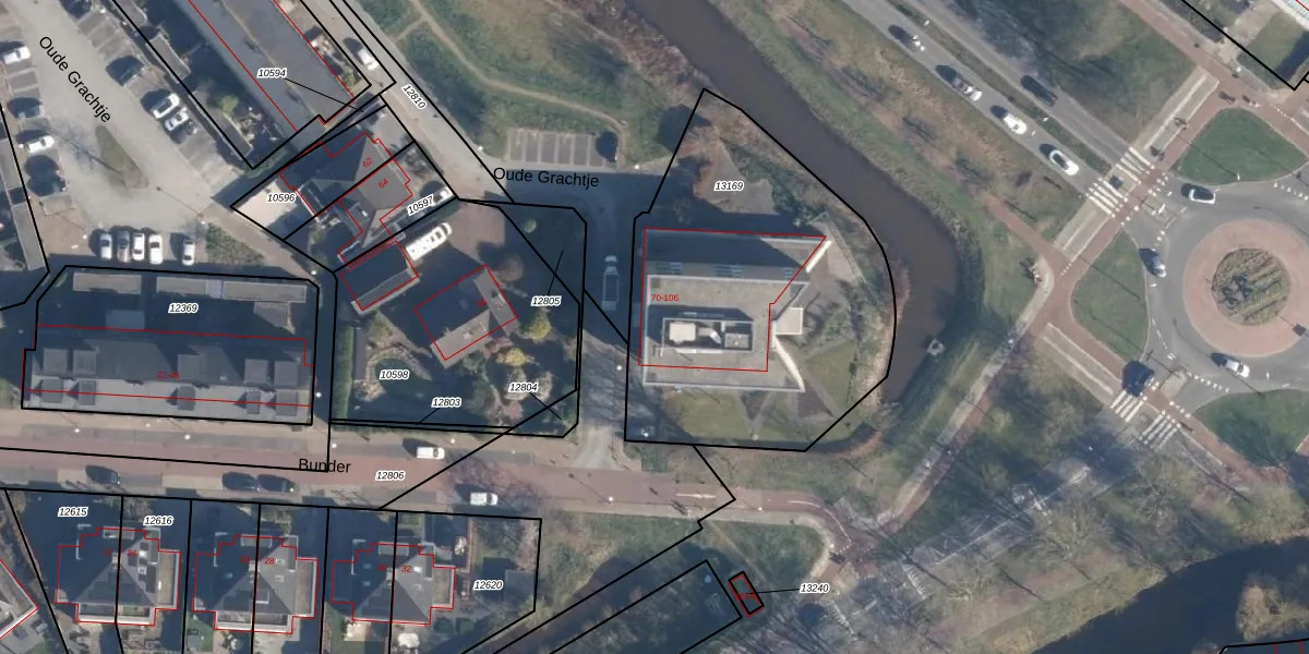 Oude Grachtje 96 is gelegen op kadastraal perceel SOE00G13169. Deze kadastrale aanduiding is uniek en wordt gebruikt door het Kadaster om eigendomsrechten en andere zakelijke rechten vast te leggen. Het perceel maakt onderdeel uit van de kadastrale gemeente Soest.