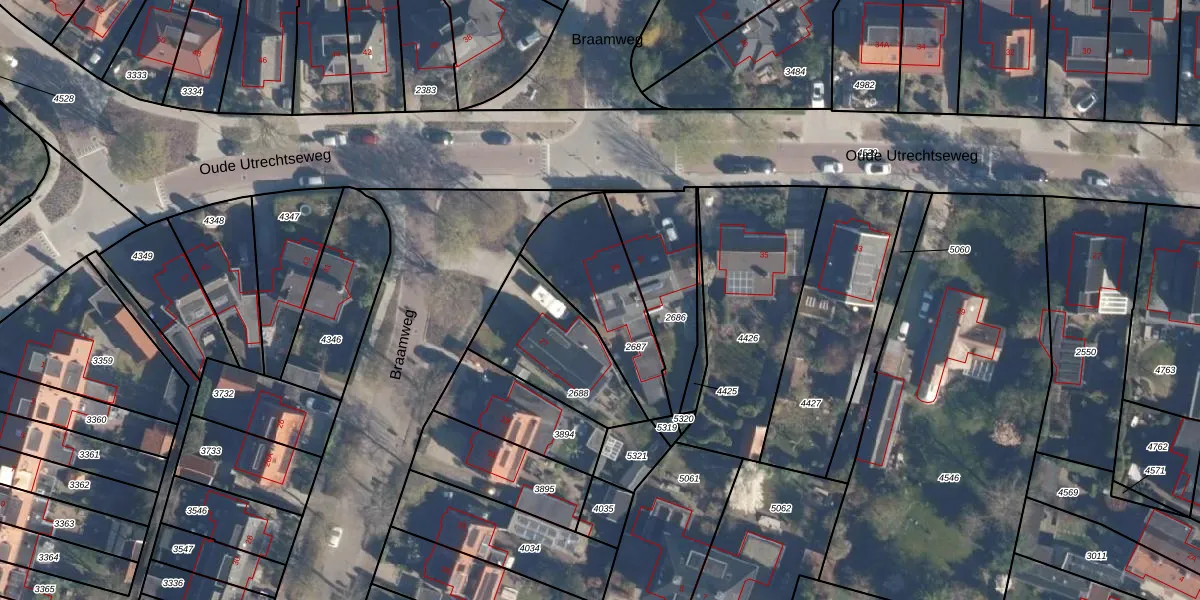 Het perceel waarop Oude Utrechtseweg 39 staat heeft een oppervlakte van 395 m². Dit is een groot perceel. De perceeloppervlakte wordt geregistreerd door het Kadaster. Gedetailleerde informatie over de maten van dit perceel kunt u vinden in het rapport Kadastrale kaart met maatvoering van Oude Utrechtseweg 39.
