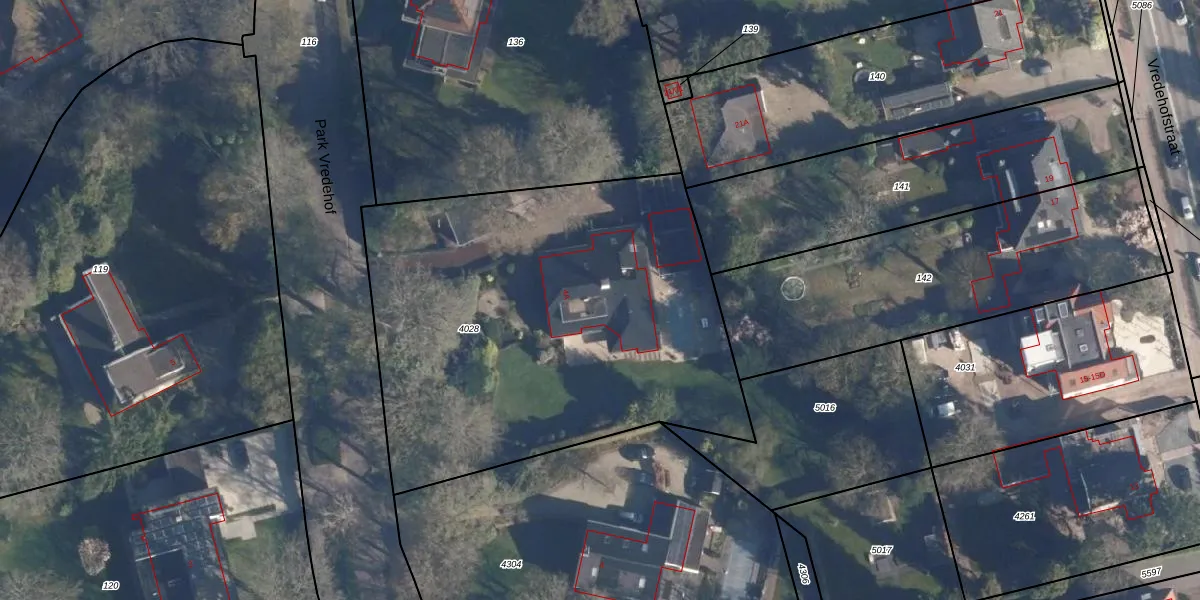 Het perceel waarop Park Vredehof 4-A staat heeft een oppervlakte van 2535 m². Dit is een zeer groot perceel. De perceeloppervlakte wordt geregistreerd door het Kadaster. Gedetailleerde informatie over de maten van dit perceel kunt u vinden in het rapport Kadastrale kaart met maatvoering van Park Vredehof 4-A.