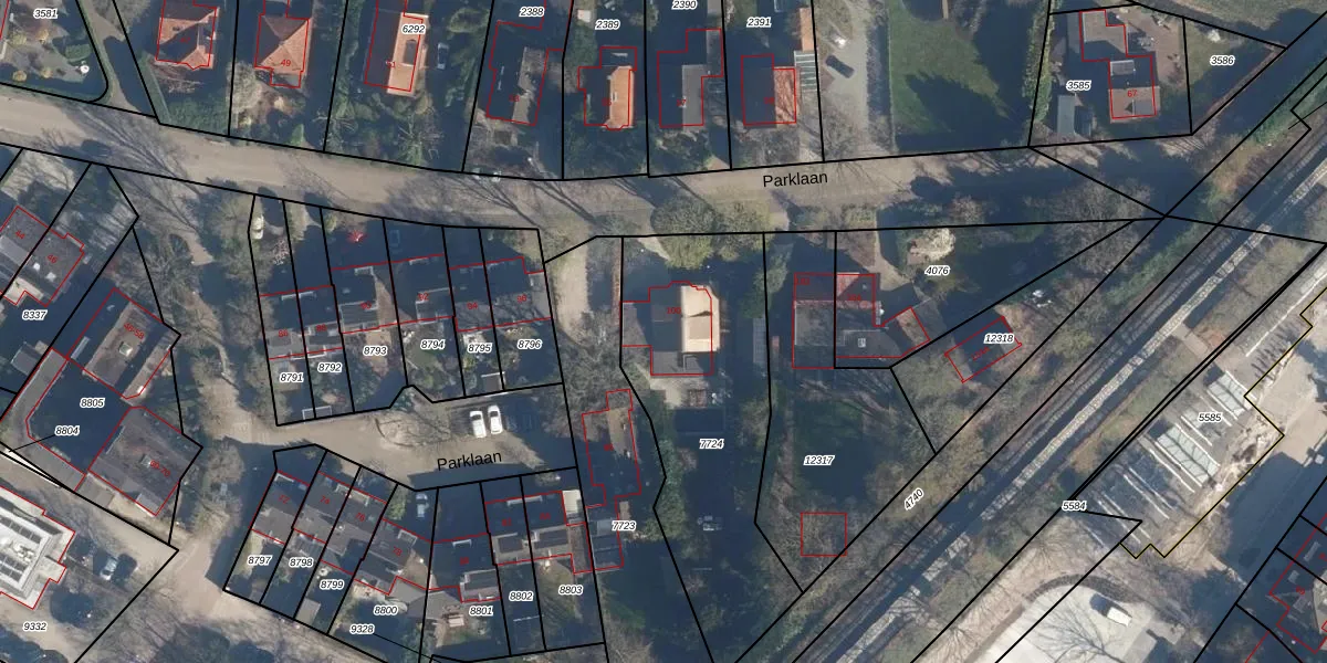 Parklaan 100 is gelegen op kadastraal perceel SOE00G7724. Deze kadastrale aanduiding is uniek en wordt gebruikt door het Kadaster om eigendomsrechten en andere zakelijke rechten vast te leggen. Het perceel maakt onderdeel uit van de kadastrale gemeente Soest.