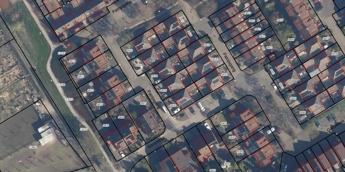 Patrijsgang 17 is gelegen op kadastraal perceel SOE00G9435. Deze kadastrale aanduiding is uniek en wordt gebruikt door het Kadaster om eigendomsrechten en andere zakelijke rechten vast te leggen. Het perceel maakt onderdeel uit van de kadastrale gemeente Soest.