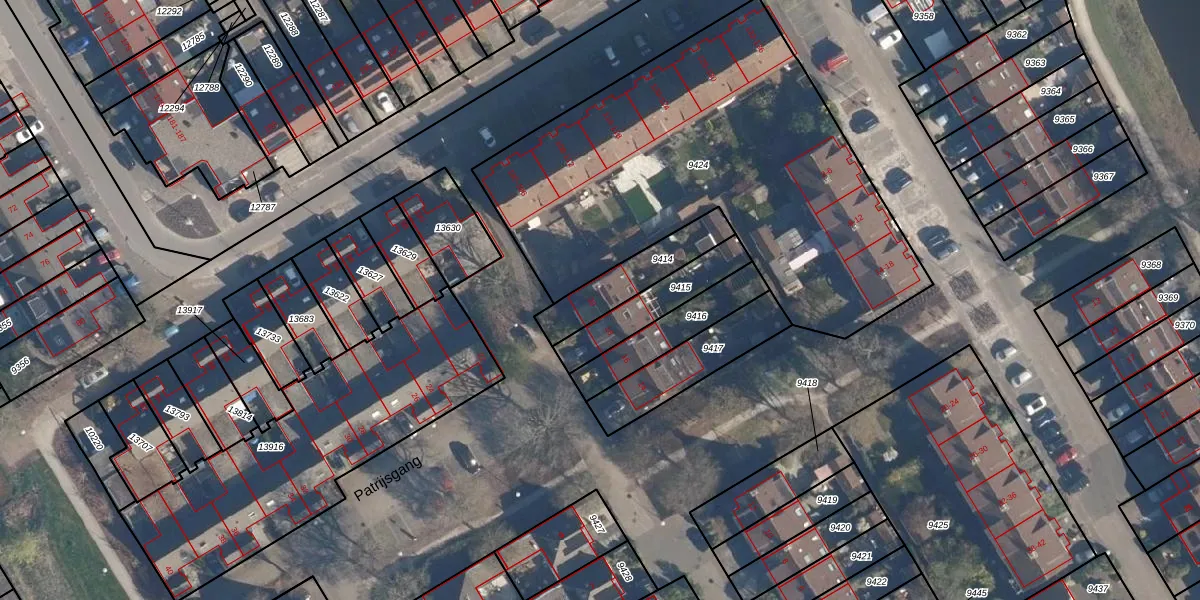 Gebruik de zoekbalk of klik op een perceel voor informatie over de adressen binnen dit perceel.