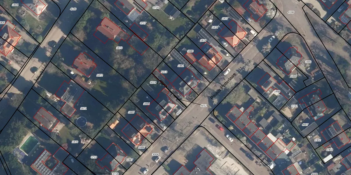 Paulus Potterlaan 16 is gelegen op kadastraal perceel SOE00K5013. Deze kadastrale aanduiding is uniek en wordt gebruikt door het Kadaster om eigendomsrechten en andere zakelijke rechten vast te leggen. Het perceel maakt onderdeel uit van de kadastrale gemeente Soest.