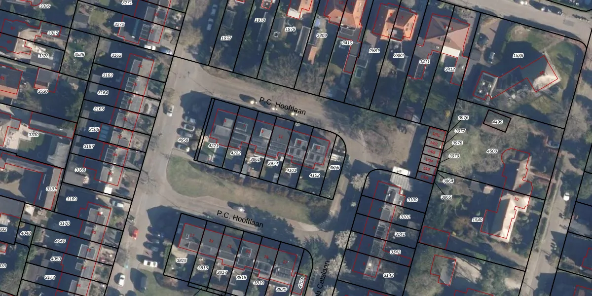 P.C. Hooftlaan 13 is gelegen op kadastraal perceel SOE00C4101. Deze kadastrale aanduiding is uniek en wordt gebruikt door het Kadaster om eigendomsrechten en andere zakelijke rechten vast te leggen. Het perceel maakt onderdeel uit van de kadastrale gemeente Soest.