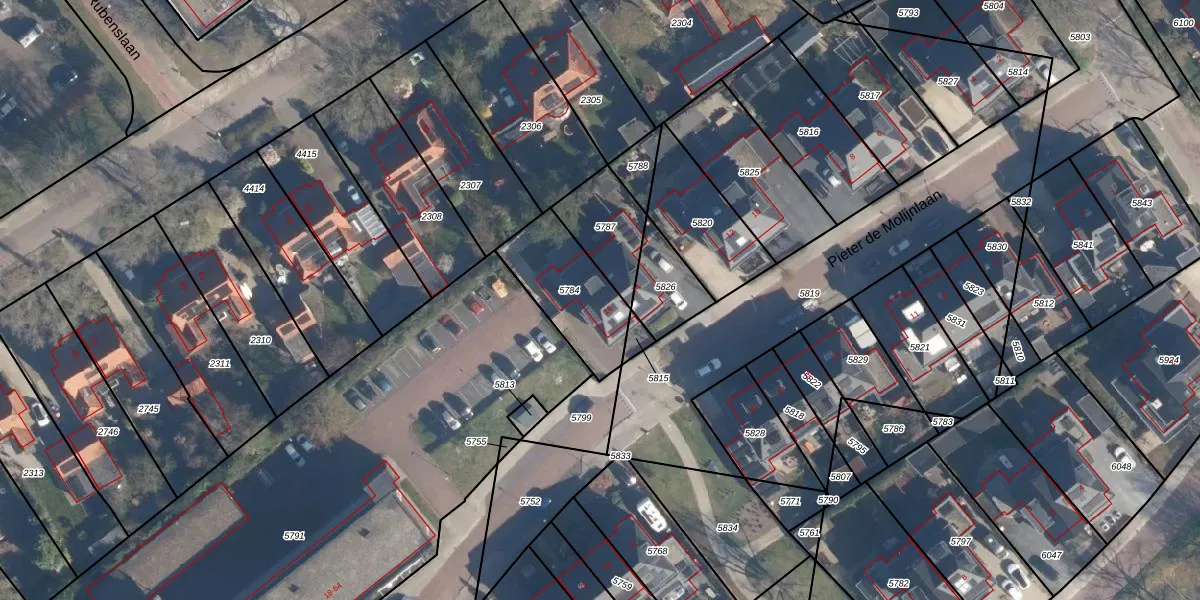 Het perceel waarop Pieter de Molijnlaan 16 staat heeft een oppervlakte van 311 m². Dit is een groot perceel. De perceeloppervlakte wordt geregistreerd door het Kadaster. Gedetailleerde informatie over de maten van dit perceel kunt u vinden in het rapport Kadastrale kaart met maatvoering van Pieter de Molijnlaan 16.