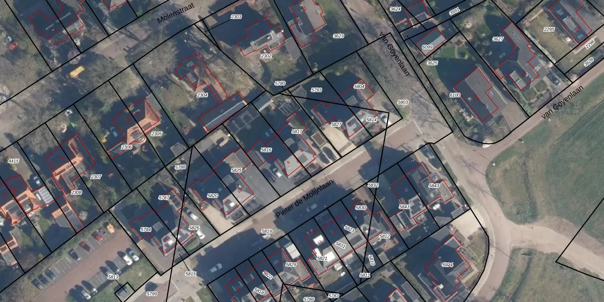 Pieter de Molijnlaan 6 is gelegen op kadastraal perceel SOE00K5817. Deze kadastrale aanduiding is uniek en wordt gebruikt door het Kadaster om eigendomsrechten en andere zakelijke rechten vast te leggen. Het perceel maakt onderdeel uit van de kadastrale gemeente Soest.