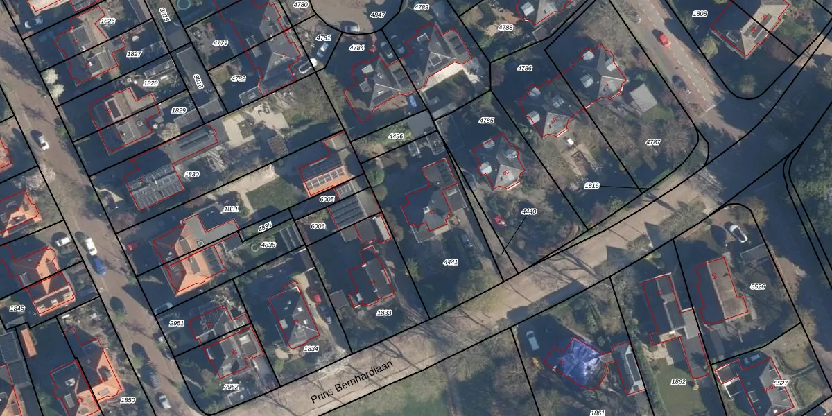 Het perceel waarop Prins Bernhardlaan 42 staat heeft een oppervlakte van 815 m². Dit is een groot perceel. De perceeloppervlakte wordt geregistreerd door het Kadaster. Gedetailleerde informatie over de maten van dit perceel kunt u vinden in het rapport Kadastrale kaart met maatvoering van Prins Bernhardlaan 42.