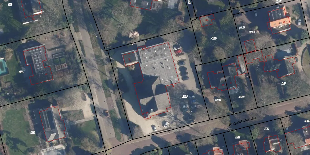 Het perceel waarop Regentesselaan 2-B staat heeft een oppervlakte van 3214 m². Dit is een zeer groot perceel. De perceeloppervlakte wordt geregistreerd door het Kadaster. Gedetailleerde informatie over de maten van dit perceel kunt u vinden in het rapport Kadastrale kaart met maatvoering van Regentesselaan 2-B.