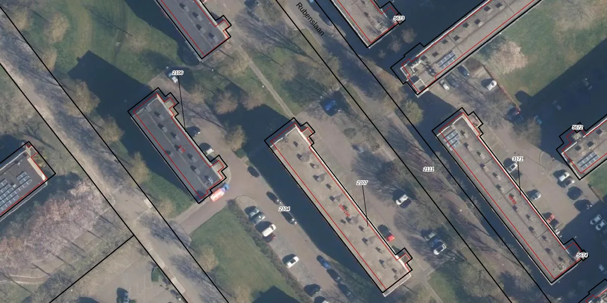 Het perceel waarop Rubenslaan 106 staat heeft een oppervlakte van 747 m². Dit is een groot perceel. De perceeloppervlakte wordt geregistreerd door het Kadaster. Gedetailleerde informatie over de maten van dit perceel kunt u vinden in het rapport Kadastrale kaart met maatvoering van Rubenslaan 106.