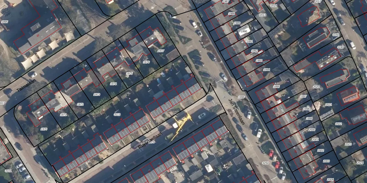Het perceel waarop Ruysdaellaan 4 staat heeft een oppervlakte van 2395 m². Dit is een zeer groot perceel. De perceeloppervlakte wordt geregistreerd door het Kadaster. Gedetailleerde informatie over de maten van dit perceel kunt u vinden in het rapport Kadastrale kaart met maatvoering van Ruysdaellaan 4.