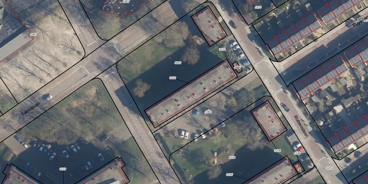 Het perceel waarop Ruysdaellaan 52 staat heeft een oppervlakte van 592 m². Dit is een groot perceel. De perceeloppervlakte wordt geregistreerd door het Kadaster. Gedetailleerde informatie over de maten van dit perceel kunt u vinden in het rapport Kadastrale kaart met maatvoering van Ruysdaellaan 52.