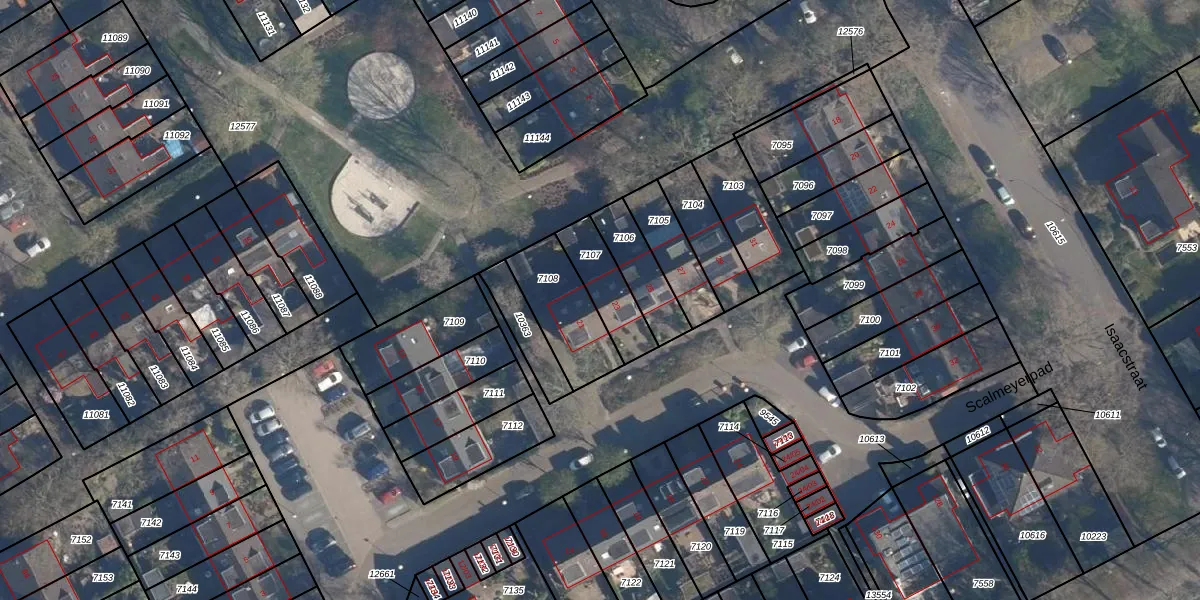 Het perceel waarop Scalmeyerpad 23 staat heeft een oppervlakte van 158 m². Dit is een middelgroot perceel. De perceeloppervlakte wordt geregistreerd door het Kadaster. Gedetailleerde informatie over de maten van dit perceel kunt u vinden in het rapport Kadastrale kaart met maatvoering van Scalmeyerpad 23.