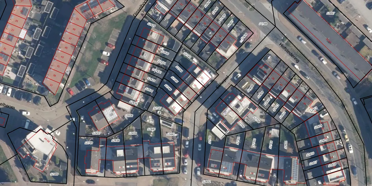 Gebruik de zoekbalk of klik op een perceel voor informatie over de adressen binnen dit perceel.