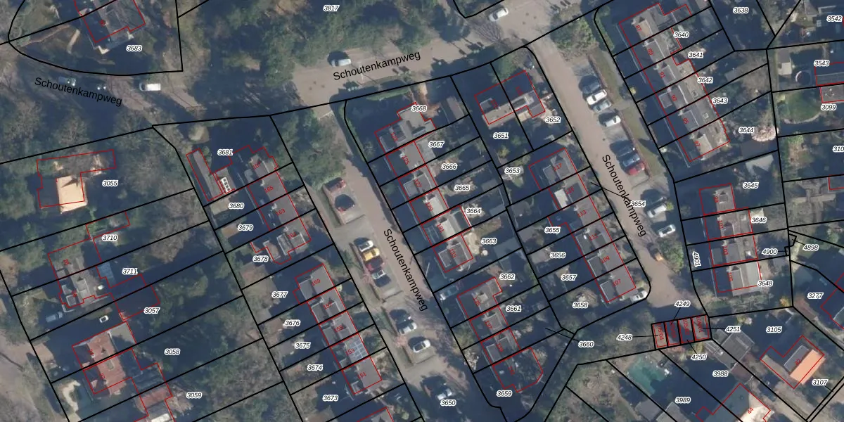 Schoutenkampweg 129 is gelegen op kadastraal perceel SOE00D3665. Deze kadastrale aanduiding is uniek en wordt gebruikt door het Kadaster om eigendomsrechten en andere zakelijke rechten vast te leggen. Het perceel maakt onderdeel uit van de kadastrale gemeente Soest.