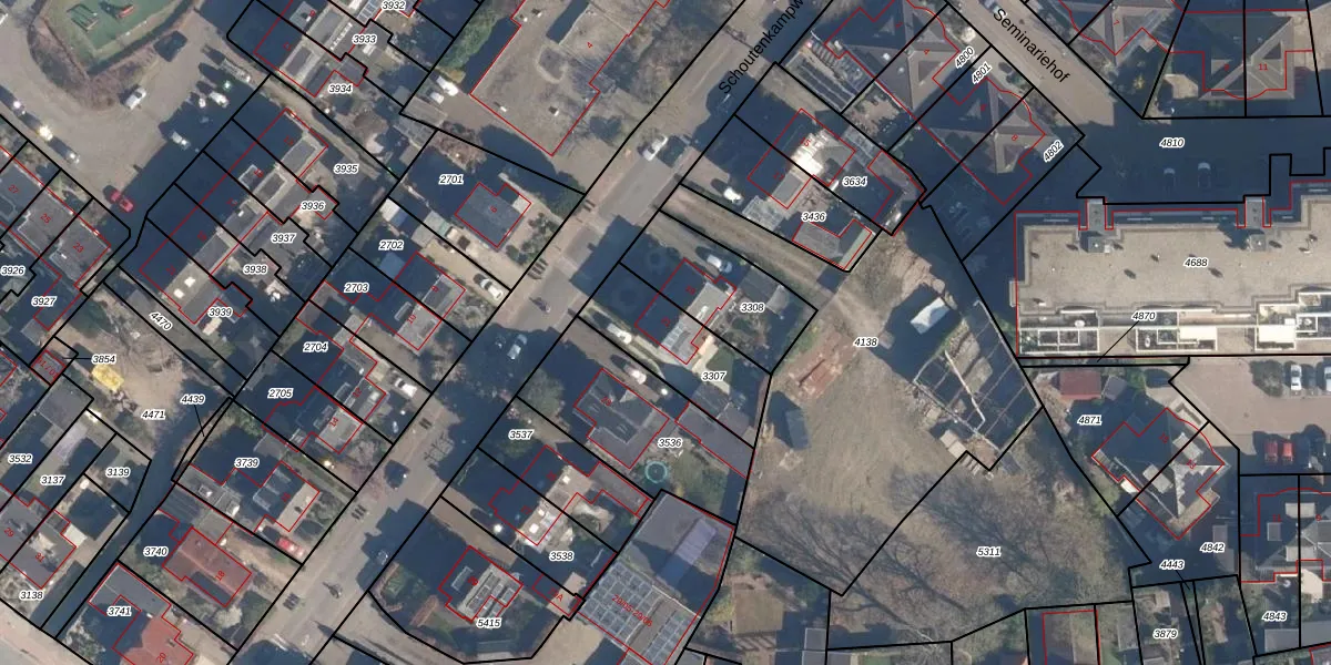 Schoutenkampweg 21 is gelegen op kadastraal perceel SOE00D3307. Deze kadastrale aanduiding is uniek en wordt gebruikt door het Kadaster om eigendomsrechten en andere zakelijke rechten vast te leggen. Het perceel maakt onderdeel uit van de kadastrale gemeente Soest.