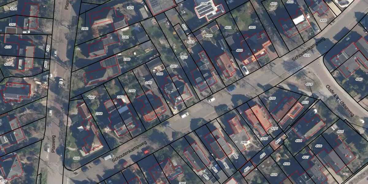 Schoutenkampweg 60 is gelegen op kadastraal perceel SOE00D3497. Deze kadastrale aanduiding is uniek en wordt gebruikt door het Kadaster om eigendomsrechten en andere zakelijke rechten vast te leggen. Het perceel maakt onderdeel uit van de kadastrale gemeente Soest.