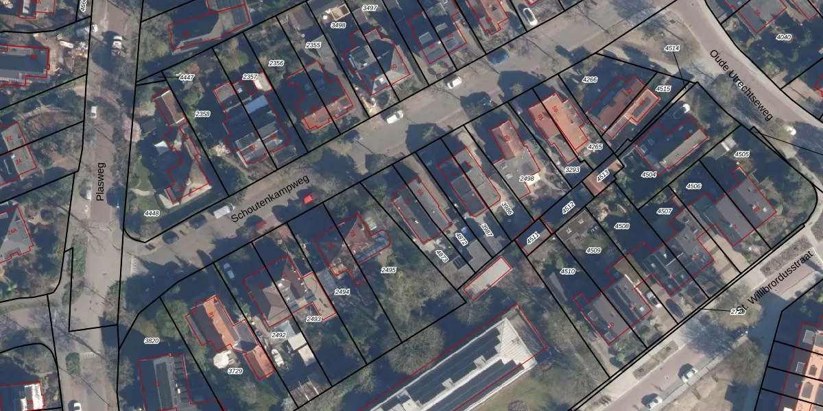 Schoutenkampweg 71 is gelegen op kadastraal perceel SOE00D4873. Deze kadastrale aanduiding is uniek en wordt gebruikt door het Kadaster om eigendomsrechten en andere zakelijke rechten vast te leggen. Het perceel maakt onderdeel uit van de kadastrale gemeente Soest.