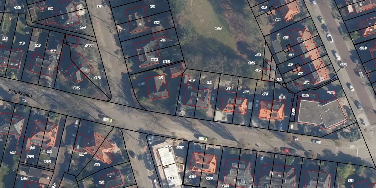 Schrikslaan 46 is gelegen op kadastraal perceel SOE00K500. Deze kadastrale aanduiding is uniek en wordt gebruikt door het Kadaster om eigendomsrechten en andere zakelijke rechten vast te leggen. Het perceel maakt onderdeel uit van de kadastrale gemeente Soest.