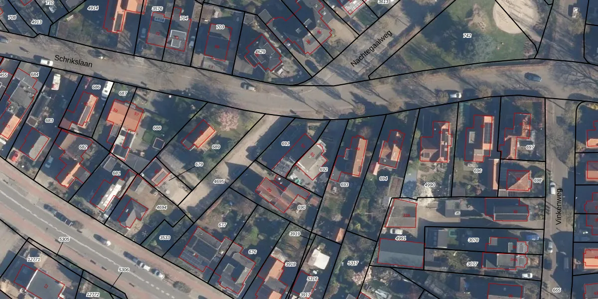 Schrikslaan 53 is gelegen op kadastraal perceel SOE00K691. Deze kadastrale aanduiding is uniek en wordt gebruikt door het Kadaster om eigendomsrechten en andere zakelijke rechten vast te leggen. Het perceel maakt onderdeel uit van de kadastrale gemeente Soest.
