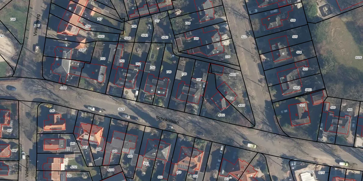 Schrikslaan 54 is gelegen op kadastraal perceel SOE00K748. Deze kadastrale aanduiding is uniek en wordt gebruikt door het Kadaster om eigendomsrechten en andere zakelijke rechten vast te leggen. Het perceel maakt onderdeel uit van de kadastrale gemeente Soest.