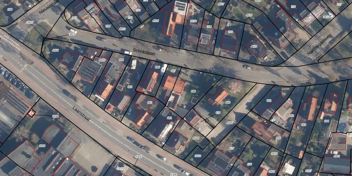 Schrikslaan 57 is gelegen op kadastraal perceel SOE00K688. Deze kadastrale aanduiding is uniek en wordt gebruikt door het Kadaster om eigendomsrechten en andere zakelijke rechten vast te leggen. Het perceel maakt onderdeel uit van de kadastrale gemeente Soest.