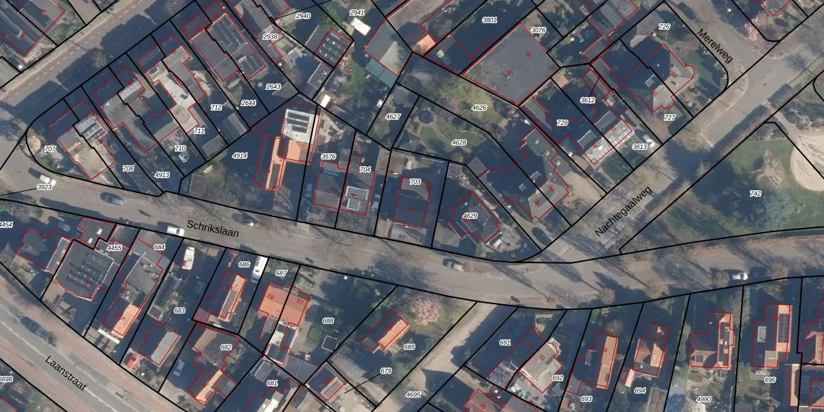 Schrikslaan 68 is gelegen op kadastraal perceel SOE00K703. Deze kadastrale aanduiding is uniek en wordt gebruikt door het Kadaster om eigendomsrechten en andere zakelijke rechten vast te leggen. Het perceel maakt onderdeel uit van de kadastrale gemeente Soest.