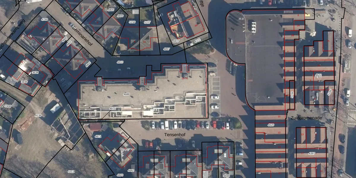Het perceel waarop Seminariehof 66 staat heeft een oppervlakte van 2095 m². Dit is een zeer groot perceel. De perceeloppervlakte wordt geregistreerd door het Kadaster. Gedetailleerde informatie over de maten van dit perceel kunt u vinden in het rapport Kadastrale kaart met maatvoering van Seminariehof 66.