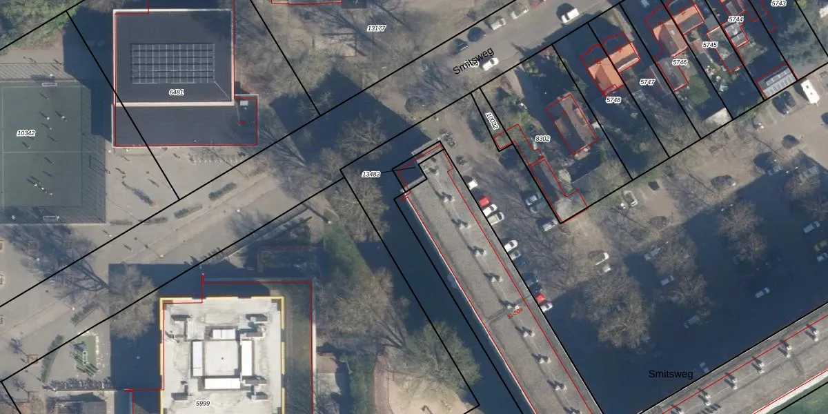 Het perceel waarop Smitsweg 151 staat heeft een oppervlakte van 2746 m². Dit is een zeer groot perceel. De perceeloppervlakte wordt geregistreerd door het Kadaster. Gedetailleerde informatie over de maten van dit perceel kunt u vinden in het rapport Kadastrale kaart met maatvoering van Smitsweg 151.