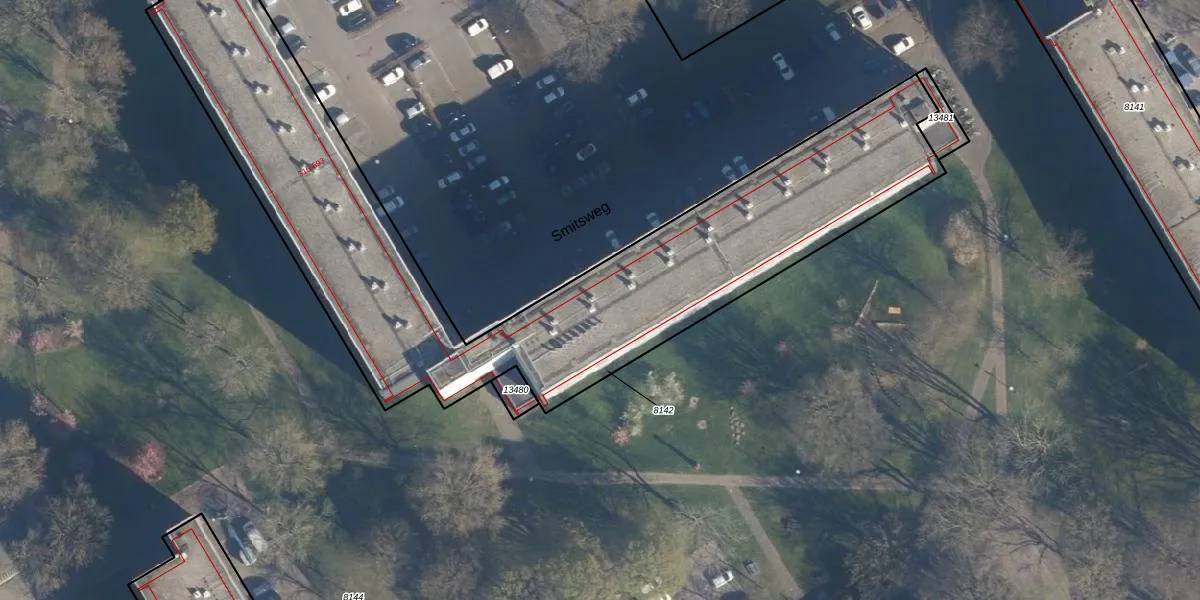 Het perceel waarop Smitsweg 479 staat heeft een oppervlakte van 2745 m². Dit is een zeer groot perceel. De perceeloppervlakte wordt geregistreerd door het Kadaster. Gedetailleerde informatie over de maten van dit perceel kunt u vinden in het rapport Kadastrale kaart met maatvoering van Smitsweg 479.