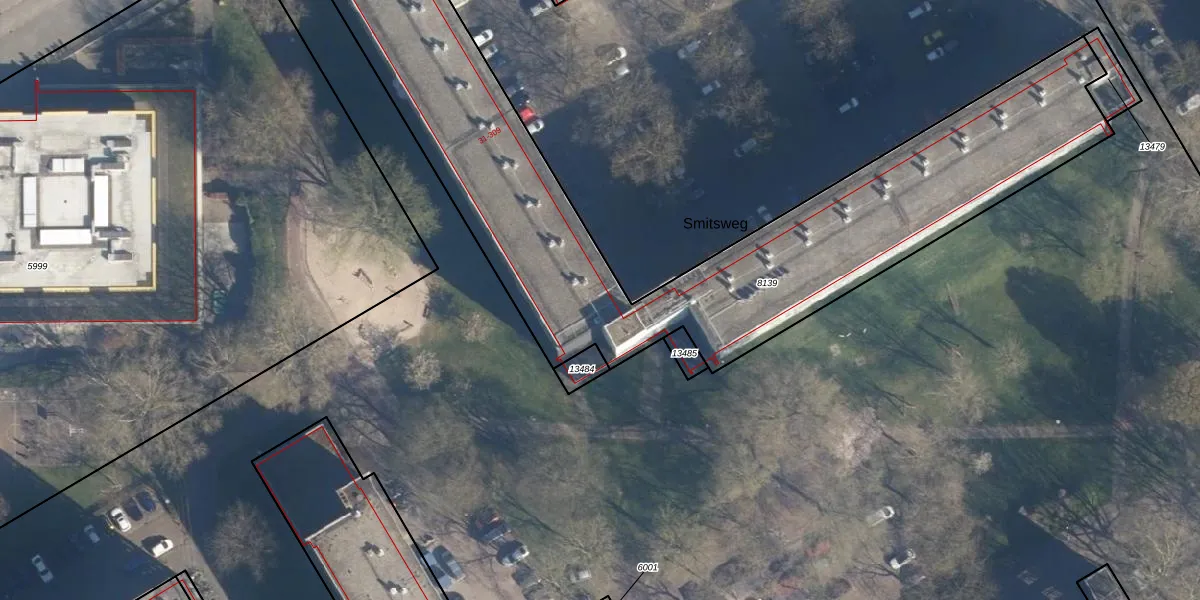 Het perceel waarop Smitsweg 49 staat heeft een oppervlakte van 2746 m². Dit is een zeer groot perceel. De perceeloppervlakte wordt geregistreerd door het Kadaster. Gedetailleerde informatie over de maten van dit perceel kunt u vinden in het rapport Kadastrale kaart met maatvoering van Smitsweg 49.