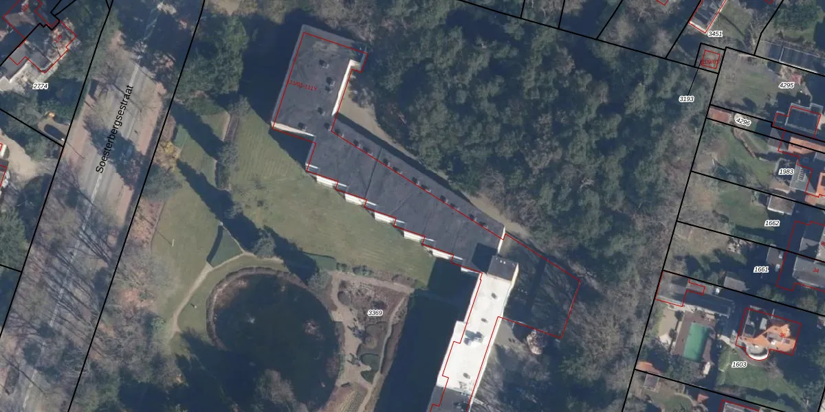 Het perceel waarop Soesterbergsestraat 111-204 staat heeft een oppervlakte van 1,9 ha. Dit is een zeer groot perceel. De perceeloppervlakte wordt geregistreerd door het Kadaster. Gedetailleerde informatie over de maten van dit perceel kunt u vinden in het rapport Kadastrale kaart met maatvoering van Soesterbergsestraat 111-204.