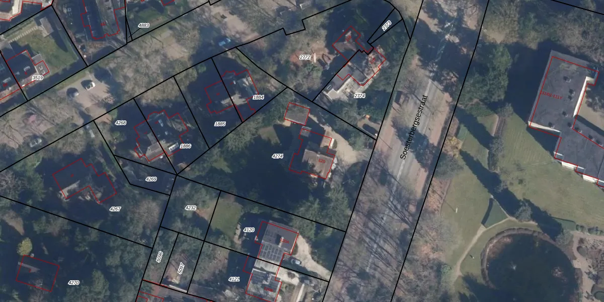 Soesterbergsestraat 120 is gelegen op kadastraal perceel SOE00D4274. Deze kadastrale aanduiding is uniek en wordt gebruikt door het Kadaster om eigendomsrechten en andere zakelijke rechten vast te leggen. Het perceel maakt onderdeel uit van de kadastrale gemeente Soest.