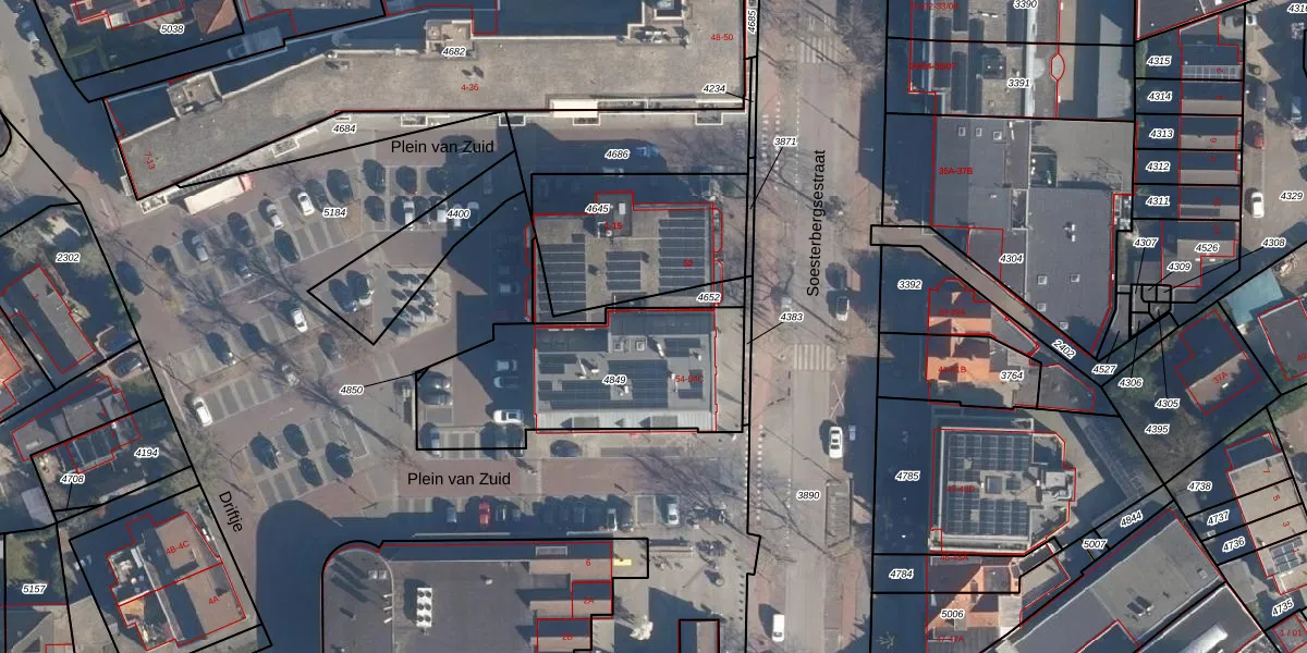 Soesterbergsestraat 54-A is gelegen op kadastraal perceel SOE00D4849. Deze kadastrale aanduiding is uniek en wordt gebruikt door het Kadaster om eigendomsrechten en andere zakelijke rechten vast te leggen. Het perceel maakt onderdeel uit van de kadastrale gemeente Soest.